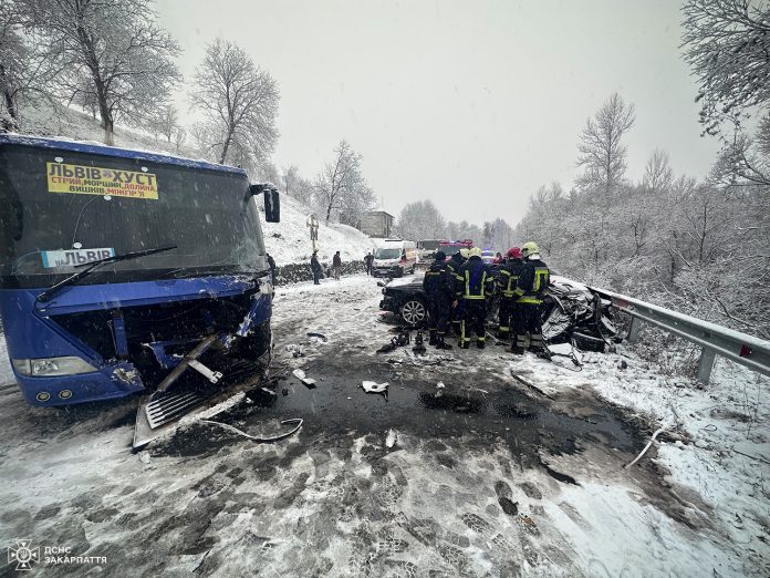 На Закарпатті легковий автомобіль зіткнувся з автобусом “Хуст-Львів”. 22-річний водій легковика загинув, пасажир автобуса травмований.